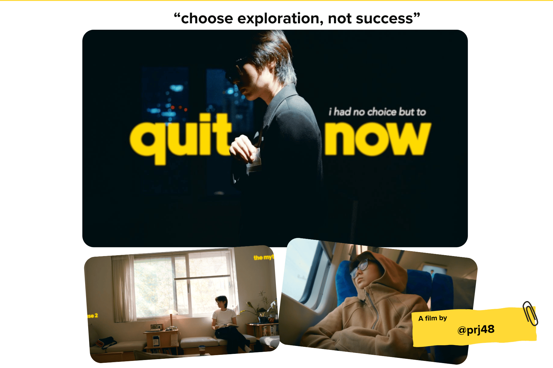 “choose exploration, not success” by @prj48 🔍 Julie is consistently a creator that creates short-form cinema, not content. 🎥 The writing on your videos are so strong and intentional. It really shows in how meaningful your messaging is and how your choice of imagery ties everything together. 🙌